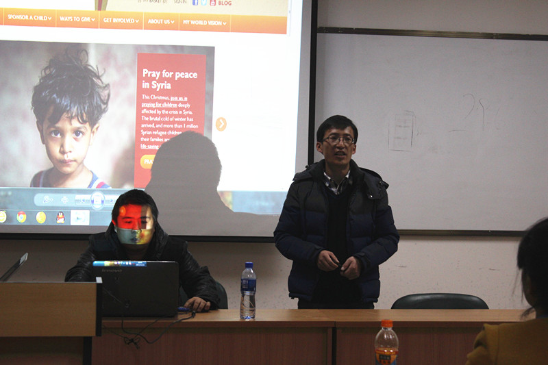 王国渝首先结合自己在NGO组织世界宣明会三年的工作经历,向大家详细介绍了NGO组织的工作方式、公益事业的价值和理念以及自己对专业与公益的认知,并建议同学们在今后的择业方向上,可以选择到各种大型非政府组织就业,获取不同的人生经历,实现人生价值。