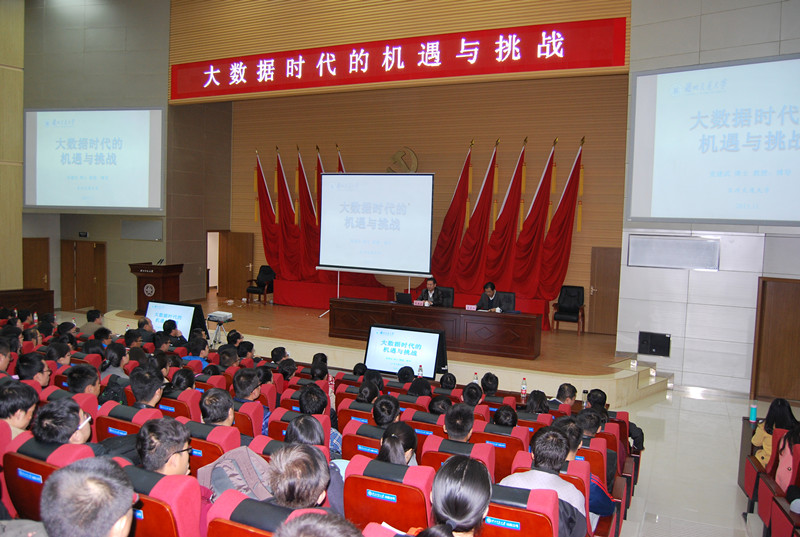 2015年11月4日下午,应学校邀请,兰州交通大学副校长党建武教授来我校作了题为《大数据时代的机遇与挑战》的学术报告,银河官网 2013级行政管理、社会工作班60余人聆听了报告。报告会由副校长董晨钟教授主持。