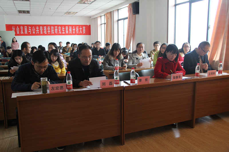 为增强学生对专业知识的应用能力,引导学生积极地将理论与实践结合在一起,达到学以致用的目的。同时,也为促进学生学好专业课,提高学生关注时政热点的积极性,了解公共政策的科学决策过程,认识公共事务管理的复杂性,提高学生观察、分析及尝试解决社会公共管理领域相关问题的能力,2015年11月6日下午,银河官网 在10D—503成功举办了第二届研究生案例分析大赛,拉开了本年度研究生学术月的序幕。银河官网 陆春萍教授、刘磊副教授、王琪英副教授和左宏愿副教授作为活动嘉宾和评委导师出席了本次大赛,张润君院长为本次大赛做了最后总结与点评。
