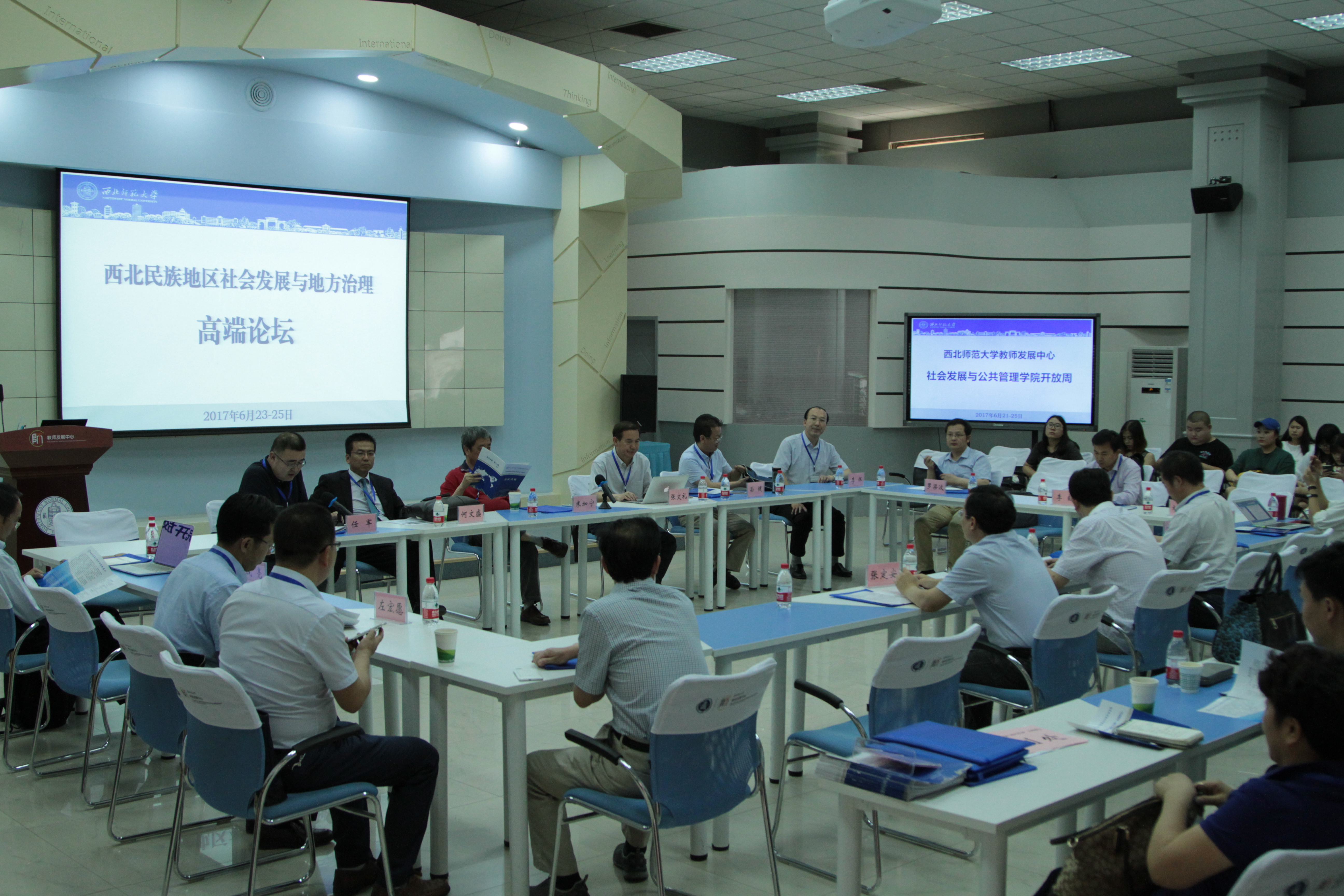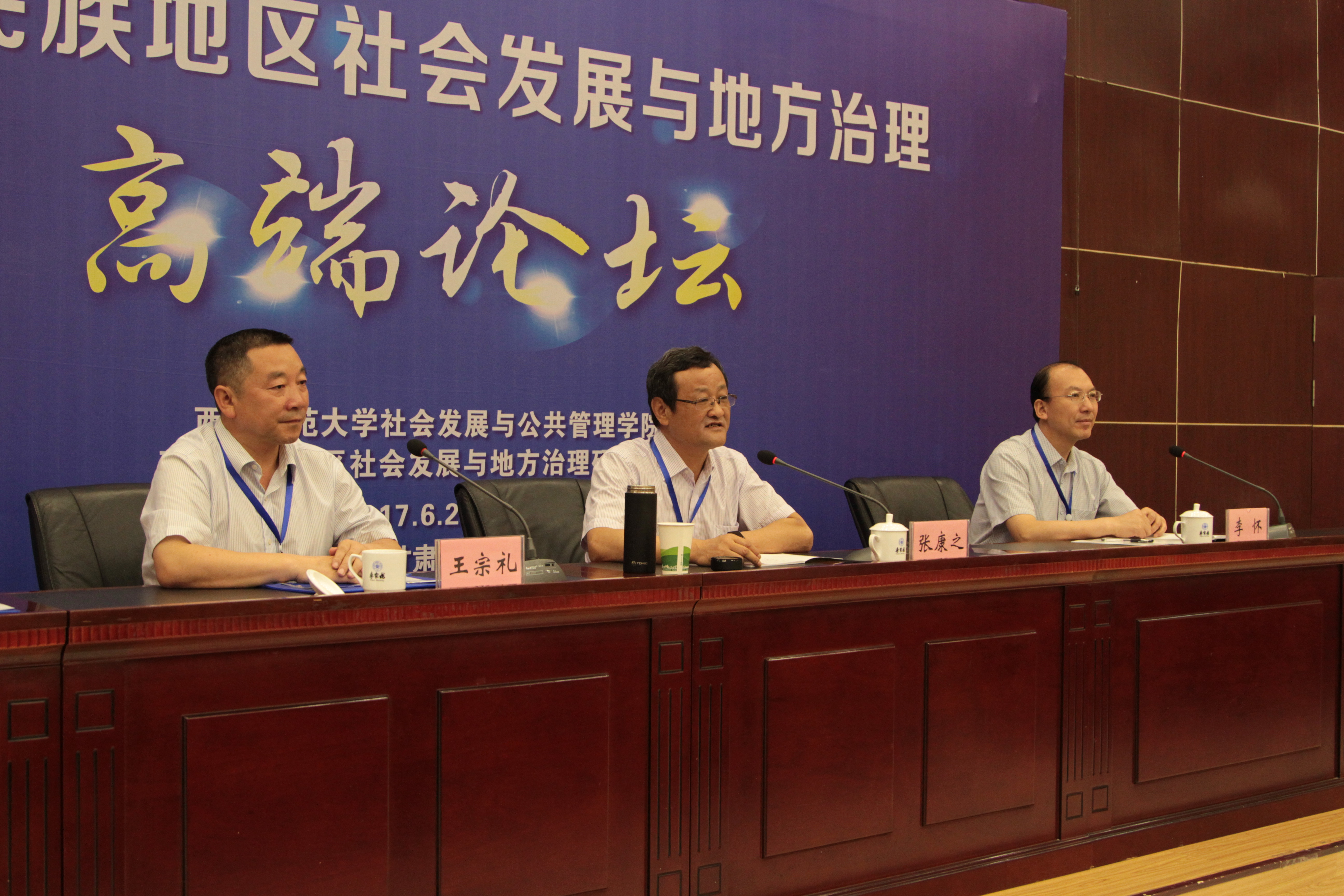 为了更好地反映西北民族地区社会发展与地方治理的研究成果,为相关领域研究者提供高质量的交流平台,2017年7月23日至25日,社会发展与公共管理学院举办了“西北民族地区社会发展与地方治理”高端论坛,学校副校长田澍教授代表学校对与会代表表示欢迎并在会议开幕式上致辞。来自中国人民大学、哈尔滨工业大学、华东师范大学、兰州大学、西北大学、宁夏大学、郑州大学、西北民族大学、北方民族大学、青海民族大学、西藏民族大学、甘肃政法学院、甘肃省委党校、甘肃省社会科学院、西北师范大学以及《中国行政管理》、《公共管理学报》、《行政论坛》和《甘肃行政学院学报》等杂志社的40余位专家学者参加论坛并发表学术观点,150位师生旁听了学术会议。