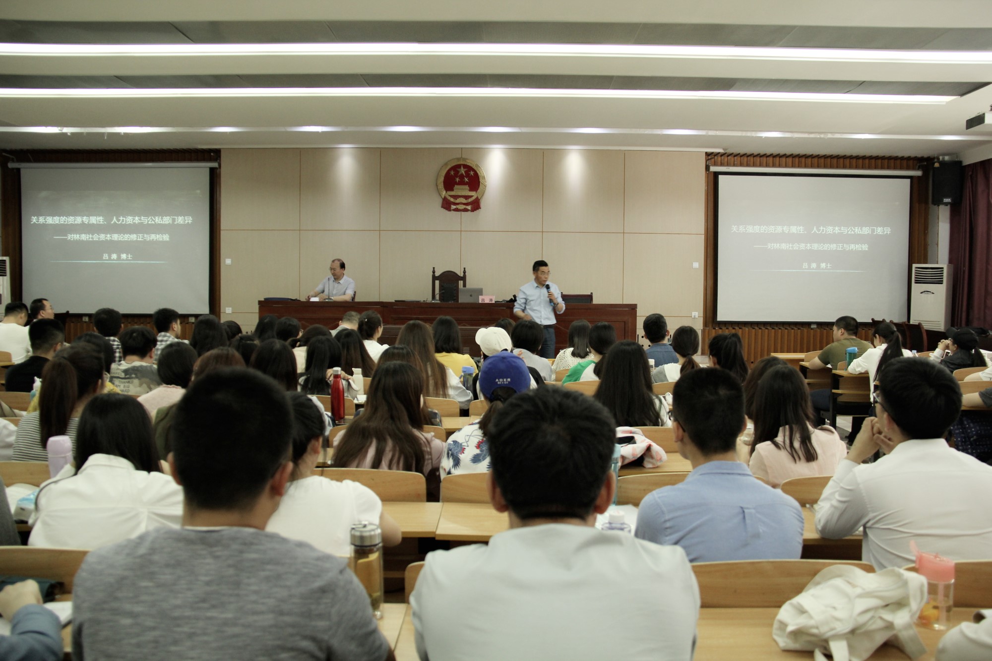 2018年5月15日下午,社会发展与公共管理学院邀请社会学量化研究领域知名学者吕涛副教授在10号教学楼D区模拟法庭举行了“关于强度的资源专属性、人力资本与公司部门差异——对林南社会资本理论的修正与再检验”的讲座。讲座由银河官网 李怀教授主持,全院师生踊跃参加。