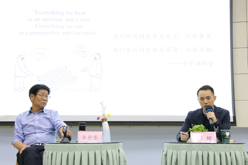 在互动环节,针对“芝诺是否混淆了实在对象与数学对象”“四维主义是否合理”“时间和空间的差别在哪”“变化盲视是否支持观察渗透理论”“逻辑和感觉哪个更可靠”“理性的边界在哪里”“观察渗透理论跟康德哲学的联系在哪”“时间是主观的还是客观的”等问题,胡好博士同在场的师生进行了热烈的讨论。