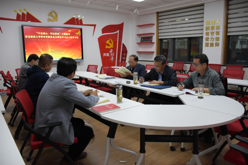 2019年9月18日晚,学院举办“不忘初心、牢记使命”主题教育夜校读书班第一次集中学习。学习会由党总支书记李光华主持,学院领导班子成员、党总支委员、学院办公室主任、学生辅导员、党务秘书等参加了学习会。