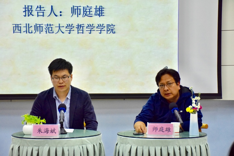 2019年9月24日晚,由西北师范大学哲学学院、中和集团、社科处与教师发展中心联合主办的“哲学沙龙——中和论道”第五十八期在西北师范大学教师发展中心如期举行。本期主题为“《形而上学》释义”。由西北师范大学哲学学院副院长师庭雄博士主讲,朱海斌博士主持。甘肃省人大常委会副主任陈克恭,西北师范大学副校长李朝东教授,甘肃省委党校张堡教授,音乐学院李莉副院长,国际文化交流学院副院长杨同军教授,哲学学院姜宗强副院长、王金元教授、贺更粹博士、胡好博士、张立恩博士以及来自各个学院的众多哲学爱好者参加了此次学术活动。