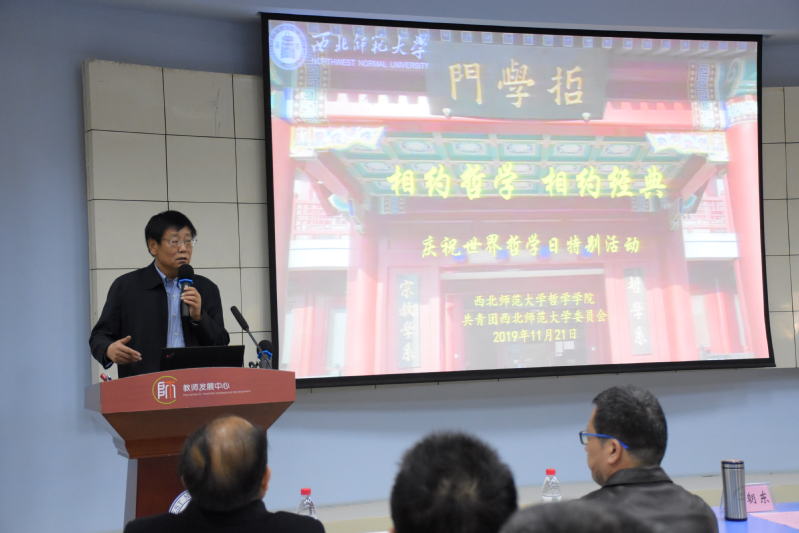 11月21日,西北师范大学哲学学院联合学校团委共同举办了世界哲学日“经典导读·哲思起航”主题文化系列活动。活动开幕仪式在教师发展中心举行,刘仲奎校长、李朝东副校长出席开幕仪式,学校相关单位负责人及哲学学院全体师生共同参加开幕式。