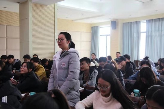 互动环节,学生们积极向焦老师提出自己的疑问,焦老师以自己广博的知识面和深厚的专业素养,用通俗易懂的案例,幽默风趣的语言一一进行了深入回应,现场互动热烈,师生共享了一场生动的学术盛宴。