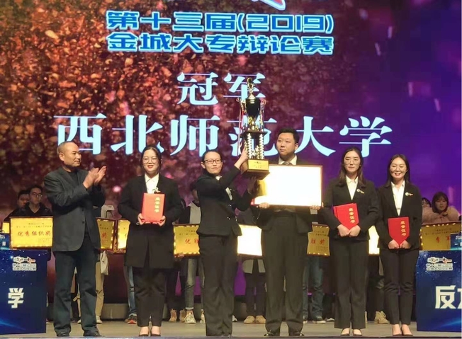 11月30日下午,“兰州电信5G”杯第十三届金城大专辩论赛决赛在兰州大学学生活动中心拉开战幕,西北师范大学对战兰州大学,围绕“实现高质量发展打造精致兰州关键在理念还是关键在实干”主题展开辩论交锋,最终我校代表队力克兰州大学,荣获总决赛冠军。