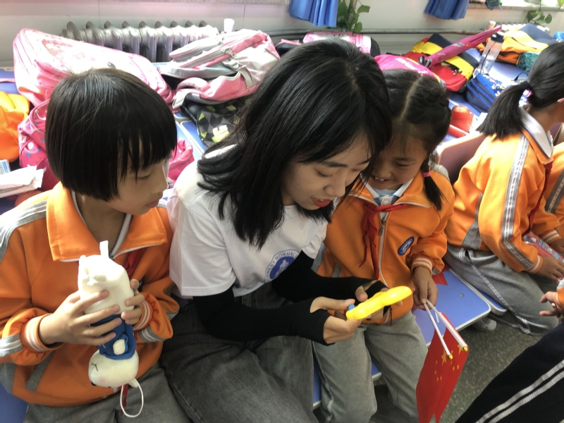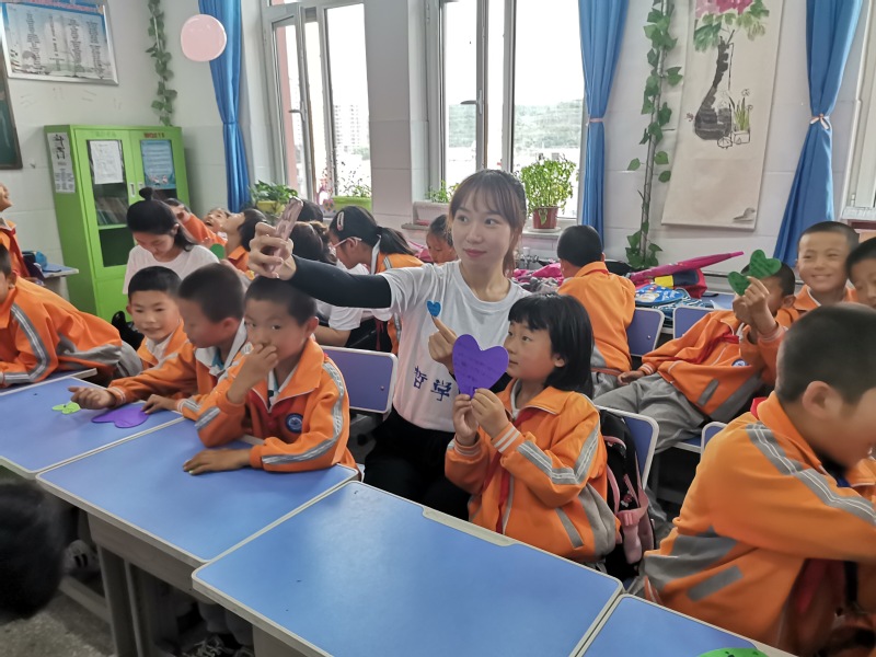 2018级本科班学生张钰歌说:“为了和孩子们打成一片,我们准备了很多益智有趣的游戏;为了教孩子们学会感恩、学会大声说出爱,我们交给他们感恩歌曲和手势舞。和孩子们一起的时光很开心,也很有意义,时间过的飞快,相信这段时光会成为我们彼此难忘的回忆。”