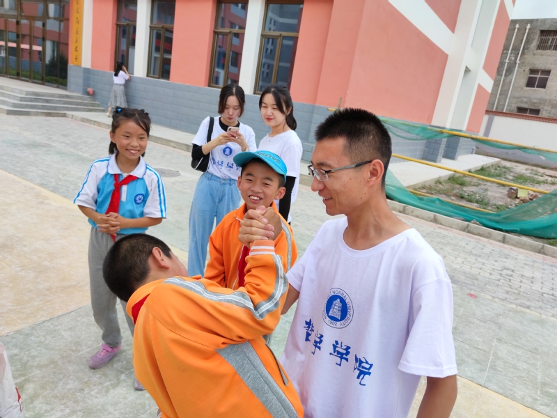 2019级硕士研究生李杰说:“来的时候晴空万里,走的时候细雨绵绵,或许天空也知道我们不舍的心情吧。希望孩子们能静下心来,好好学习,将来能够为社会贡献自己的一份力量,短暂的分别为了以后更好的相见。感谢这个暑假让我遇见了最纯真,最可爱,最天真无邪的你们。”