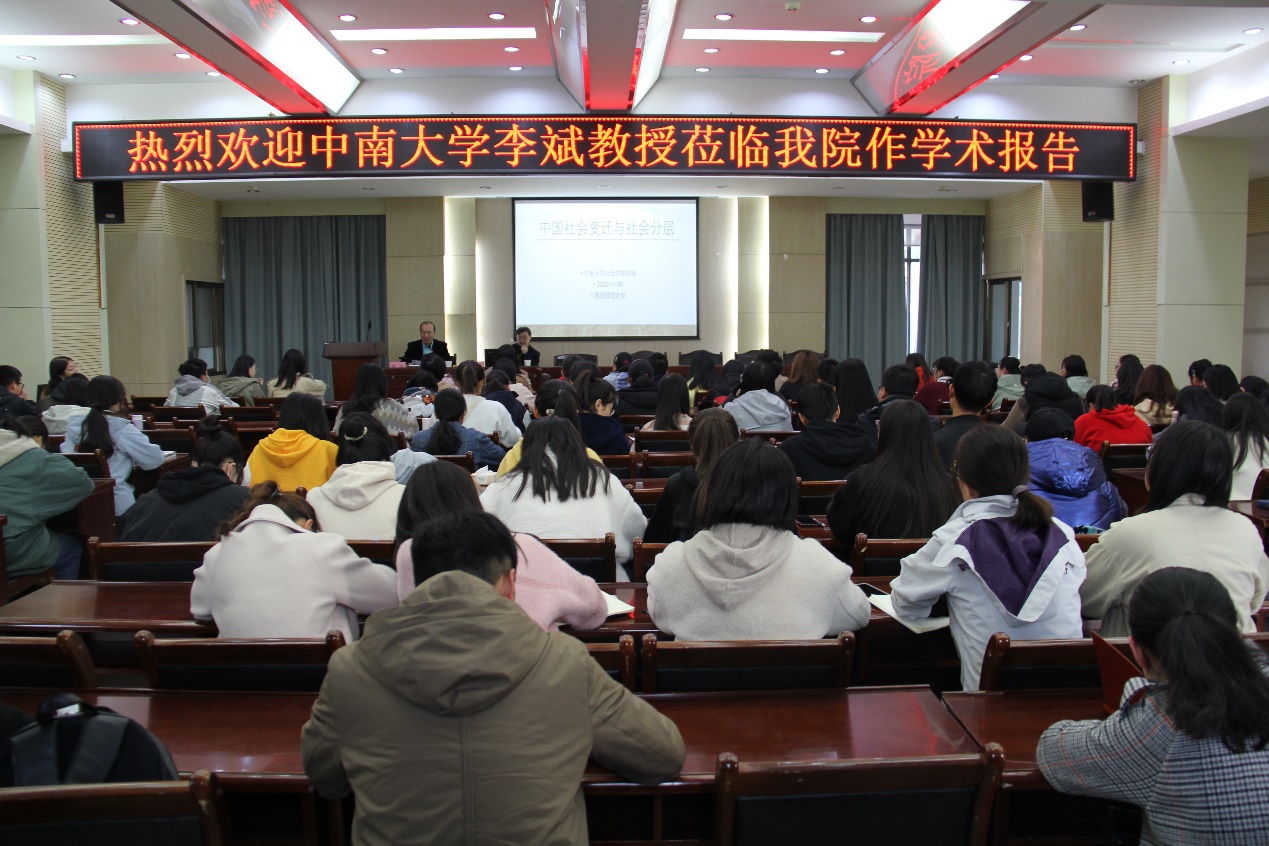 2020年11月8日上午,应学院邀请,中南大学李斌教授莅临银河官网 在10D四楼报告厅作学术讲座,主题为“中国社会变迁与社会分层”,社会发展与公共管理学院全体研究生、本科生参加了此次学术讲座。本次讲座由李怀教授主持。