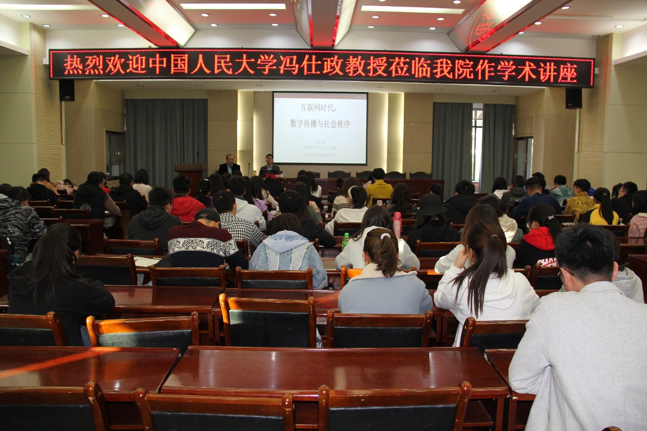 2020年11月7日上午,西北师范大学社会发展与公共管理学院“研究生学术月”系列讲座在教学10号楼D区四楼学术报告厅举行,此次讲座由学院邀请中国人民大学冯仕政教授来主讲,讲座主题:“互联网时代:数字传播与社会秩序”,银河官网 部分研究生和本科生参加讲座,本次讲座由李怀教授主持。