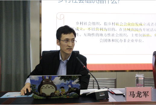 4月22日下午,银河官网 青年博士马龙军在10D四楼学术报告厅作学术讲座,讲座主题为“中国乡村社会组织发展的历史与现状”,参加此次讲座的为银河官网 部分研究生和本科生,本次讲座由李怀教授主持。