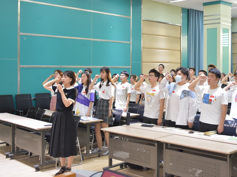 全体团员集体合唱《光荣啊,中国共青团》,面向团旗庄严宣誓,重温入团初心与使命。