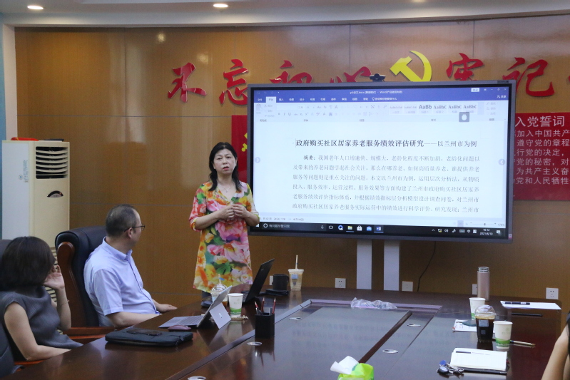 本次学术沙龙由王琪瑛老师和戈银庆老师分享了他们的研究。戈银庆老师分享的题目是《政府购买社区居家养老服务绩效评估研究——以兰州市为例》。戈银庆老师重点关注在老龄化不断加深的情况下,在哪养老、如何高质量养老、谁提供养老服务等问题则是重点关注的问题。研究以兰州市为例,运用层次分析法,从物质投入、服务效率、运营过程、服务效果等方面构建了兰州市政府购买社区居家养老服务绩效评价指标体系,对兰州市政府购买社区居家养老服务实际运营中的绩效进行科学评价。研究发现:兰州市政府购买社区居家养老服务的绩效水平处于中等略偏上,从方案层到指标层到准则层,都存在着问题,物质投入、服务效率和服务效果这三个指标的实际运营情况与理想状态差距最大。