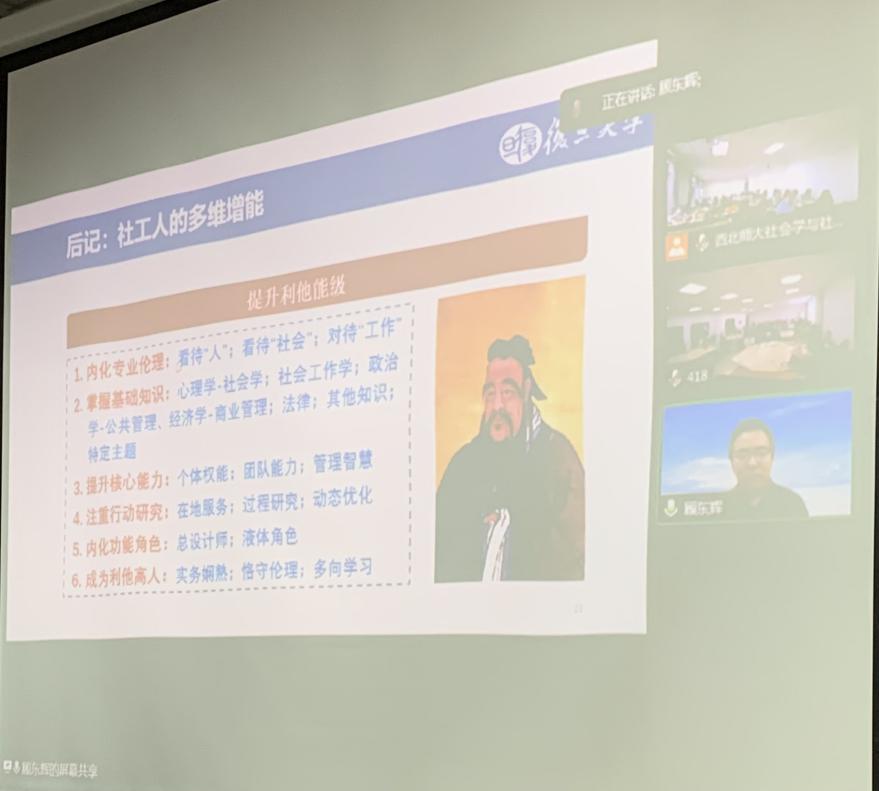 邀请在线上开展了题为“社会工作的本质与框架”的讲座。