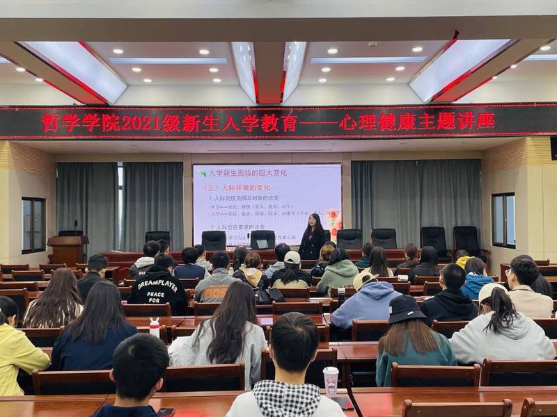 为进一步提升新生对大学新环境的认知及适应能力,帮助学生更快的融入大学生活,10月18日下午,学院邀请了学校学生心理健康指导服务中心芦银迪老师为2021级全体新生做大学生心理健康入学教育。