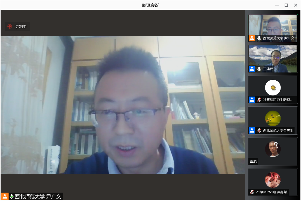 社会学系主任尹广文副教授主持,社会学研究生负责人贾应生教授做评议,全体研究生和部分老师参加了此次线上讲座。