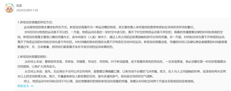 根据学校“停课不停教”的工作要求,1022日起学院教师全部进行线上教学。青年教师党员王珅在《马克思主义哲学原理》课上给2020级哲学本科班的学生布置了一份特殊的作业,要求学生运用哲学专业知识分析新冠病毒的存在及预防方式,既巩固了课程内容,又能引导学生在思想上提高站位、充分认识疫情防控的重要性和紧迫性。