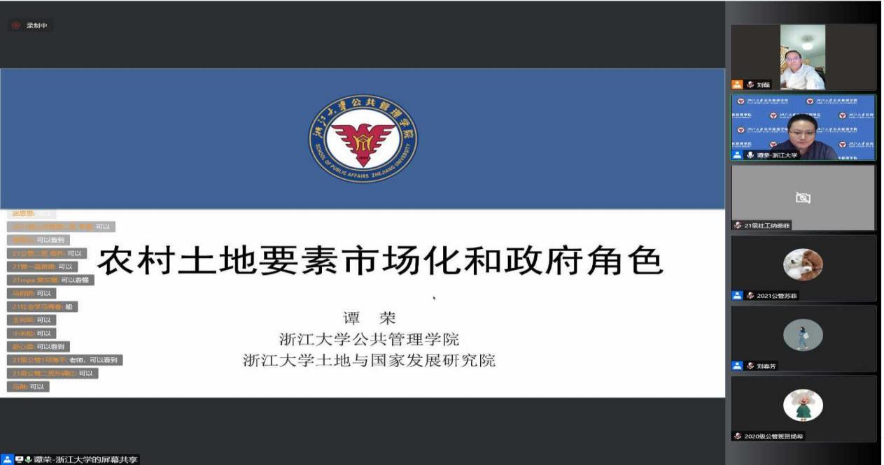 北风潜入悄无踪,未品秋浓冬已入。11月19日晚,浙江大学公共管理学院教授谭荣在腾讯会议上为银河官网 众师生带来一场名为“农村土地要素市场化和政府角色”的主题讲座。社会发展与公共管理学院师生共二百余人在线学习。本次讲座由刘磊副教授主持,刘春芳教授担任讲座评议人。