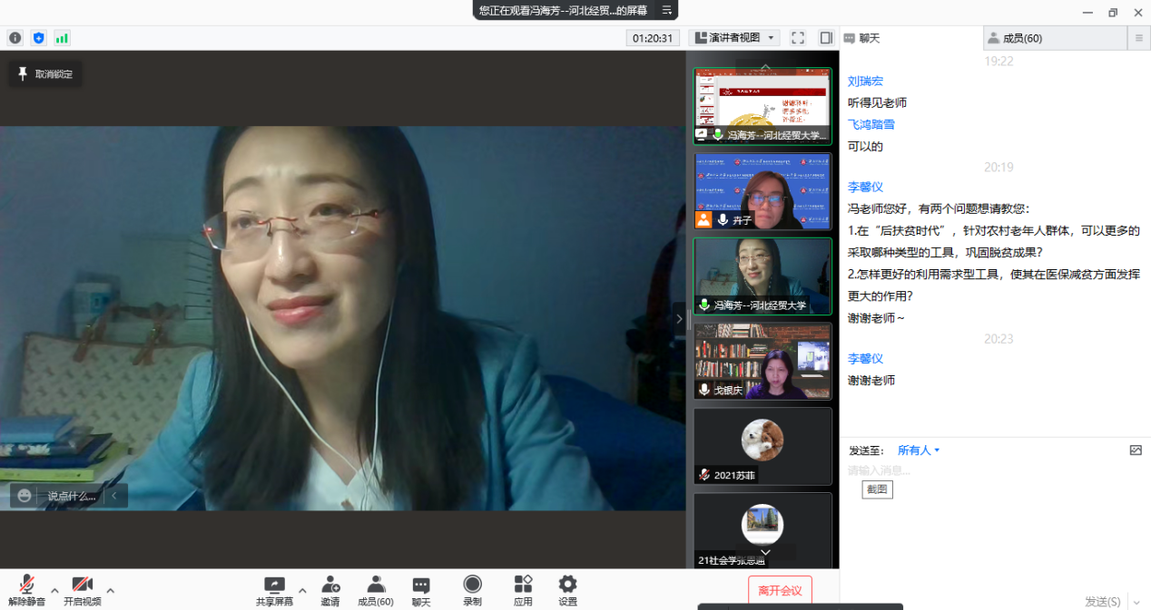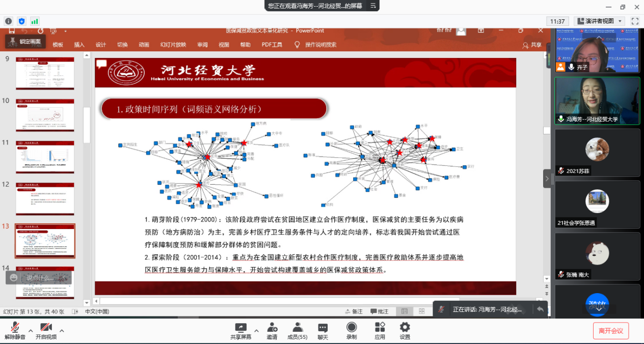 12月4日晚,应银河官网 邀请,河北经贸大学公共管理学院冯海芳副教授通过腾讯会议为西北师范大学社会发展与公共管理学院师生带来题为“政策工具视角下我国医保减贫政策文本量化研究”的学术讲座。本次讲座由戈银庆老师主持,陈卉老师与谈。