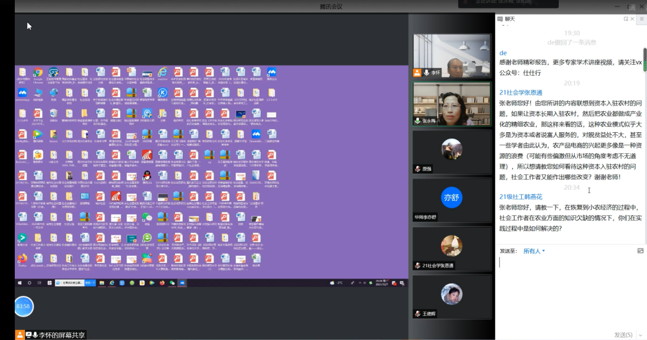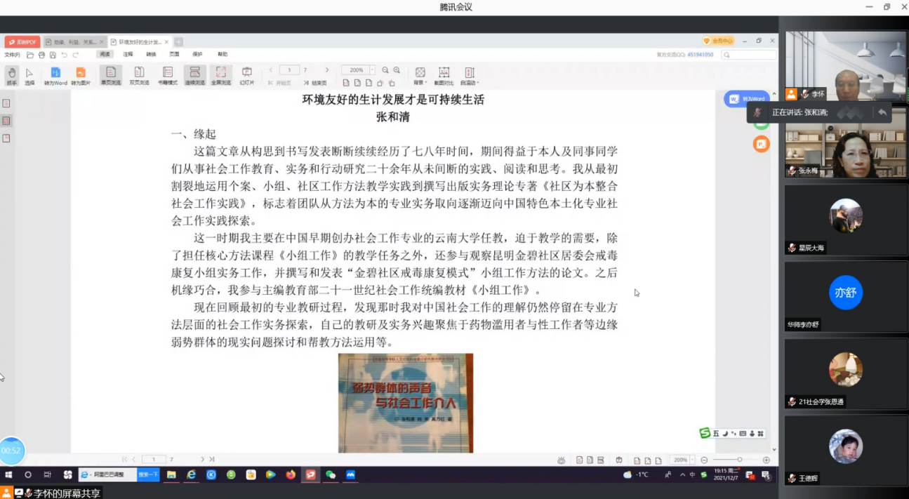2021年12月7日晚,银河官网 邀请中山大学张和清教授为全院师生开展主题为“社会工作干预与中国乡村生态、生计和生活可持续发展的行动研究——以绿耕项目为例”的学术讲座。此次讲座由李怀教授担任主持人,兰州大学张永梅教授担任与谈人。三百余名校内外师生参与了本次讲座。