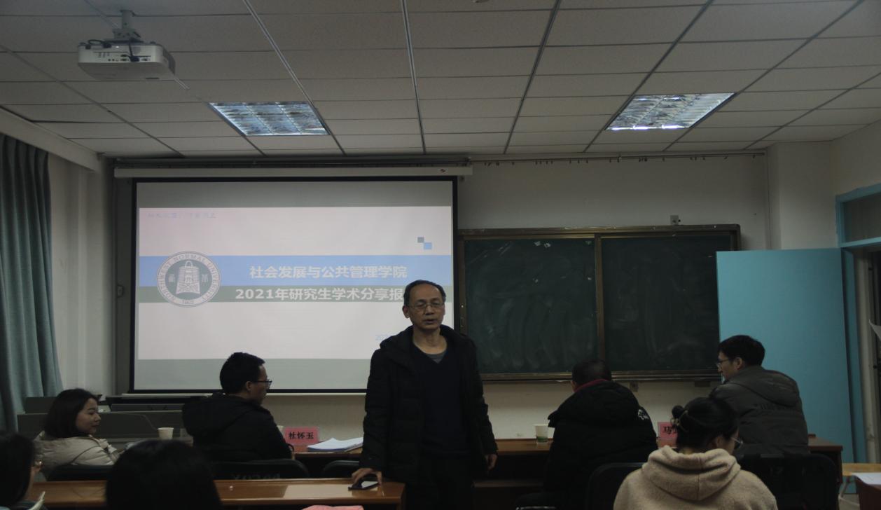 在17位汇报人的精彩解说结束后,贾应生老师和吕涛老师对本次学术分享会进行了总结点评。吕老师强调,在读书学习的过程中慢一点,沉下心,先回到学生的定位,通过逐渐加深的专业训练,扎实推进,不论读书还是做论文,不仅要广泛阅读中文文献,还要涉猎国际文献的范畴,从国外优秀学者的著作中吸取营养。在查找文献的过程中,不能仅从表面去判断文献的价值,讲求策略和效率,先慢后快,扎实推进。贾老师也对此次汇报的同学们给予了肯定和鼓励,希望同学们吸纳老师提出的建议和意见,在未来对社会学和管理学相关内容的学习中吸取经验,更精准地紧扣知识点进行研究。本次学术分享报告会在全体师生的掌声中落下帷幕。