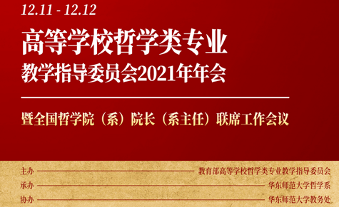 12月11日至12日,教育部高等学校哲学类专业教学指导委员会 2021 年年会暨全国哲学院(系)院长(系主任)联席工作会议成功召开,线上线下近百人参会,本次大会围绕新时代的新文科建设、一流专业建设与课程思政建设举办了13个专题报告。来自北京大学、中国人民大学、复旦大学等高校的哲学教指委委员及哲学院(系)院长(系主任)等130多位专家学者出席了本次会议。