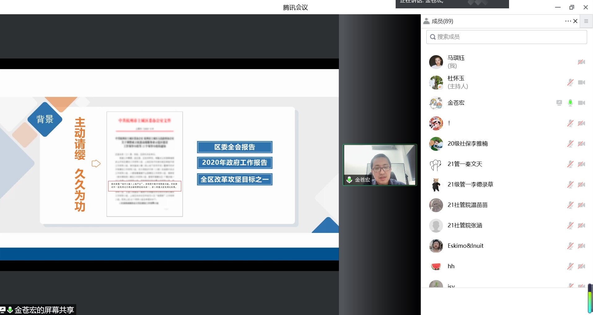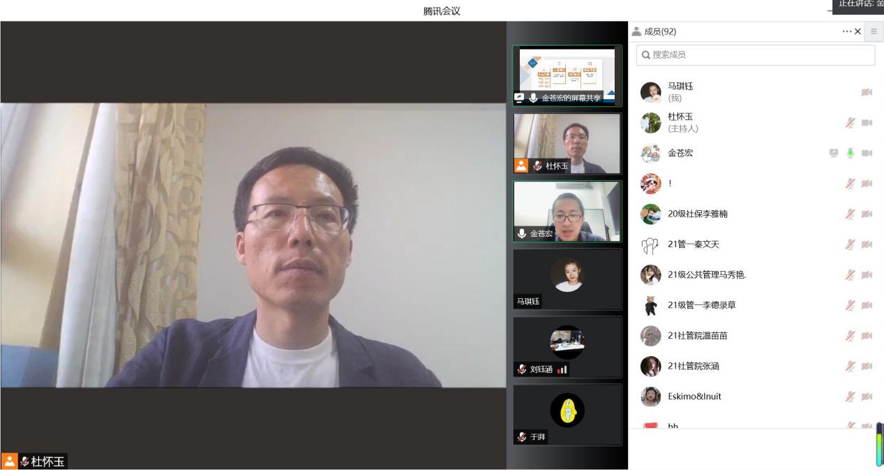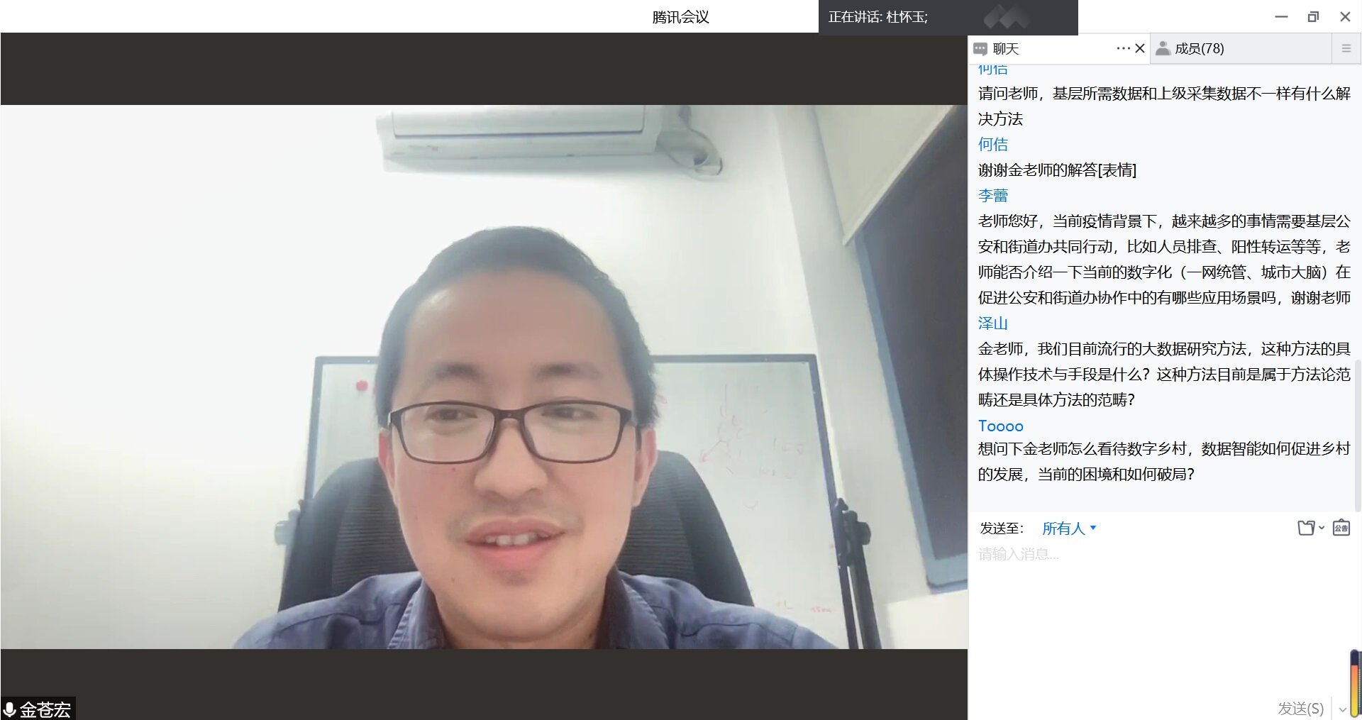 2022年5月12日晚,应银河官网 邀请,浙江大学城市学院金苍宏副教授在腾讯会议上为银河官网 众师生带来了一场以“数据智能与城市治理”为题的城市数字治理方面的学术讲座。社会发展与公共管理学院百余名师生在线学习。本次讲座由杜怀玉副教授主持。