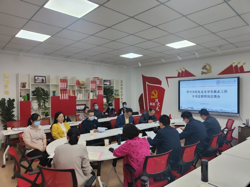 韩高年副校长讲话指出,校党委充分肯定了哲学学院抓就业方面取得的成效,学院党总支对于就业工作认识明确,态度端正。下一步,学院党总支要做好以下几项工作:一是提高政治站位,正视存在的问题。就业是最大的民生工程、民心工程、根基工程。高校毕业生是就业的重点群体,是“稳就业”工作重中之重。在当前情况下,就业形势异常严峻,就业工作压力巨大,做好大学生就业工作的具有重要意义。二是深化思想认识,解剖存在的问题。学院要认真研究存在的问题,深入分析问题根源,制定出可行有效的整改措施。三是抓好问题整改,着力做好巡察“后半篇文章”。学院党政主要负责人要履行整改第一责任人职责,对整改成效负总责,对整改质量严格把关,及时协调解决整改过程中出现的困难和问题,明确整改责任、措施及时限,做到真改实改。四是加强制度建设,建立促就业工作长效机制。要把问题整改与促进工作融为一体,既要有“当下改”的举措,又要有“长效改”的机制,既着力解决具体人和具体事的问题,也着力解决体制机制问题。