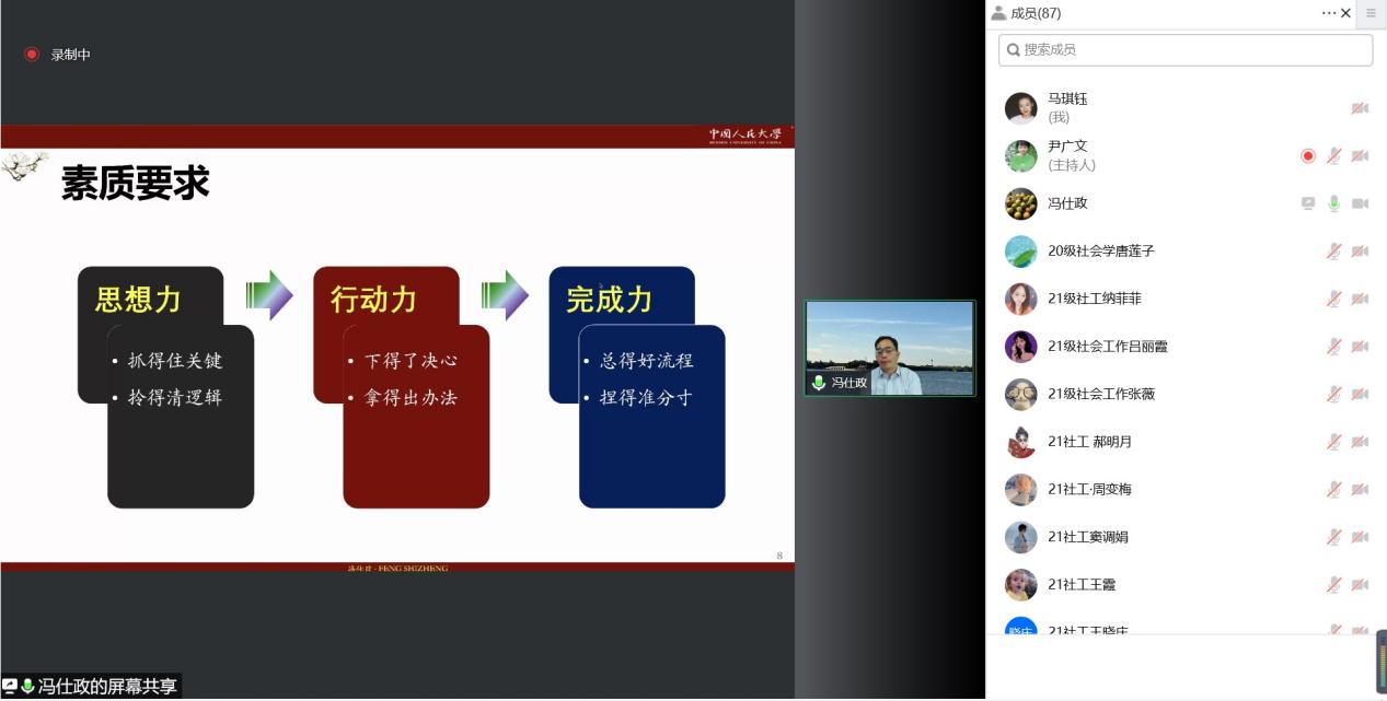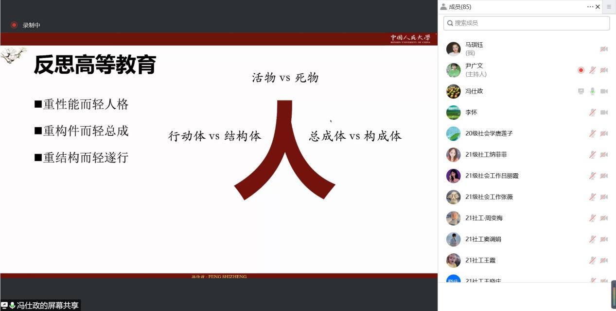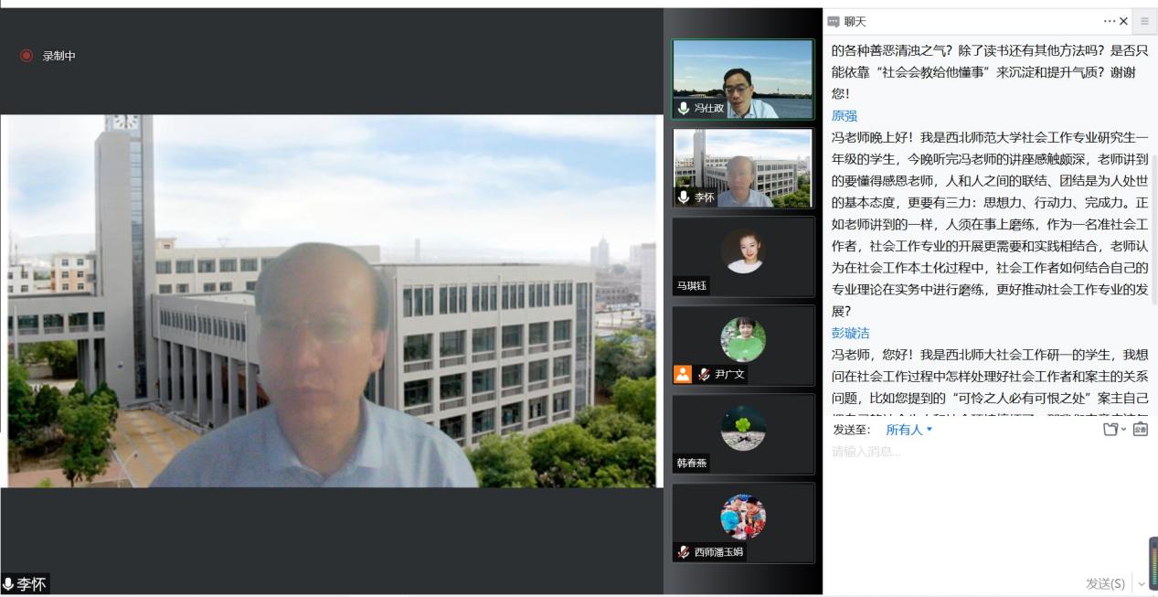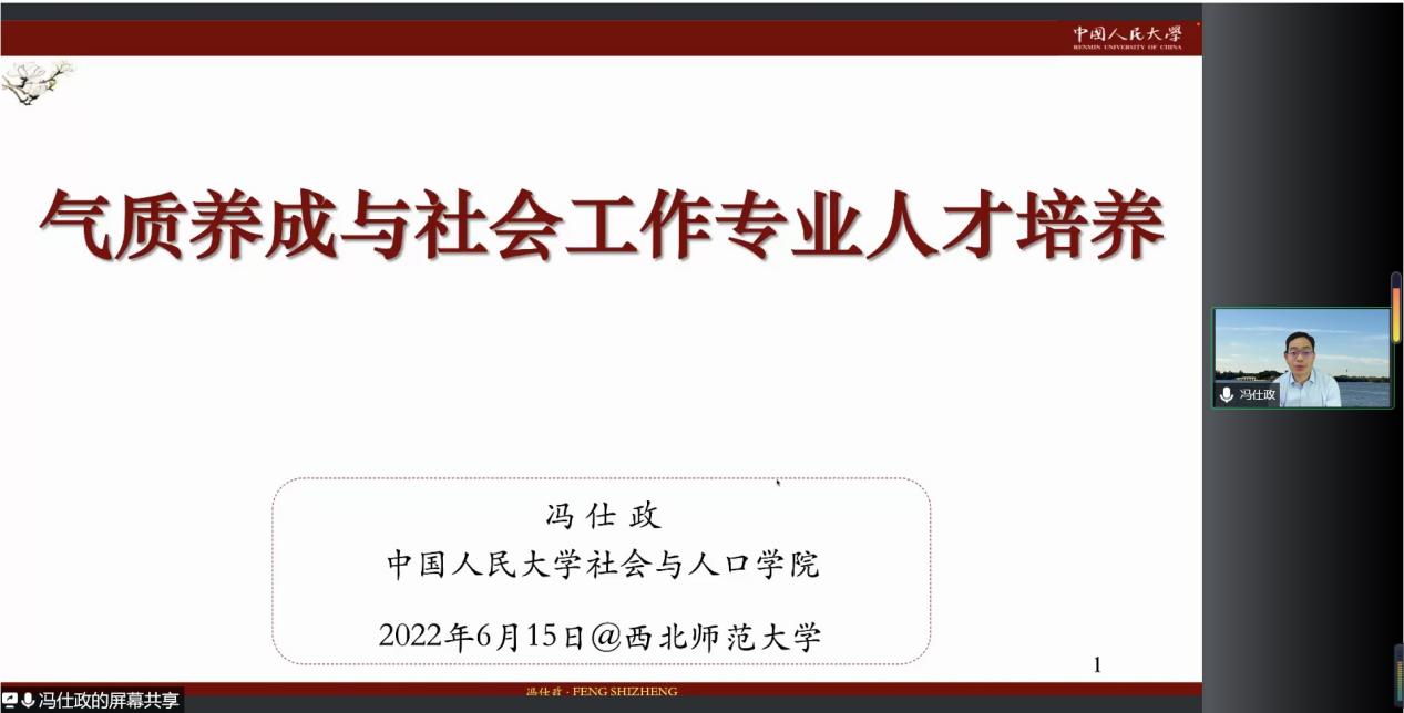 值百廿校庆之际,应银河官网 邀请,中国人民大学社会与人口学院院长、长江学者特聘教授冯仕政老师于6月15日晚为西北师范大学社会发展与公共管理学院师生带来题为“气质养成与社会工作专业人才培养”的线上学术讲座。本场讲座由李怀教授主持。