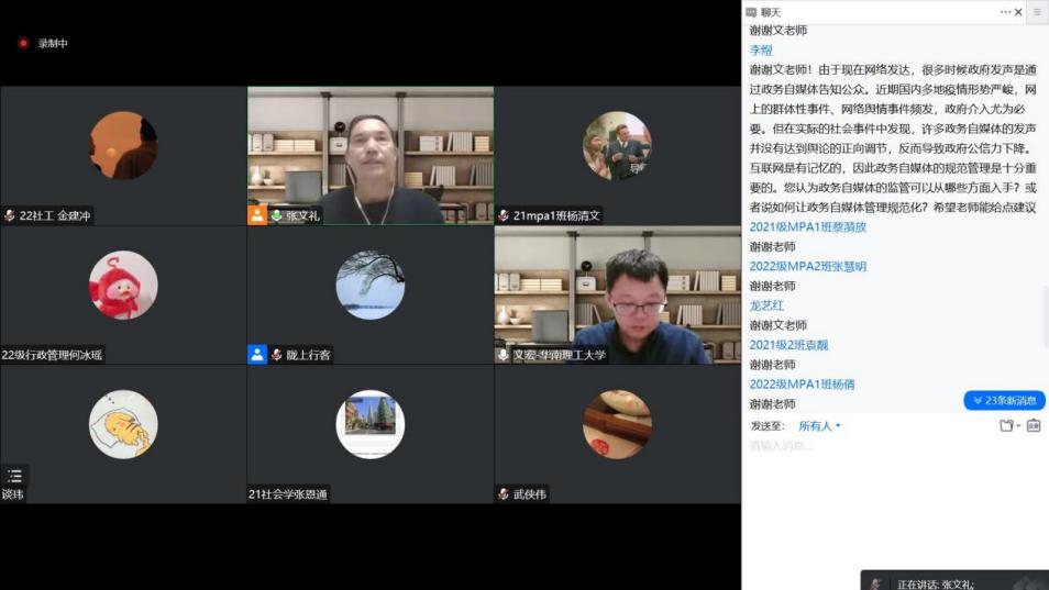 讲座尾声,银河官网 师生与文教授进行了积极互动,同学们对危机情境下城市管理及相关问题提出了许多问题,文教授均做了耐心解答。张文礼教授对文教授的精彩讲座进行了回应,并向文教授再次表达感谢,诚邀文教授在疫情结束后来西北师范大学做线下讲座,与银河官网 师生进行更深入的学术交流与探讨。