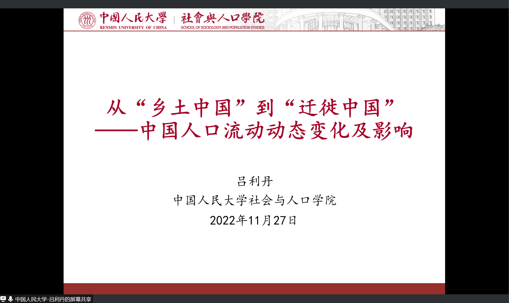 本次讲座吕老师从以下四个部分进行详细介绍。第一,吕老师以第七次全国人口普查数据为切入口,介绍了目前我国人户分离和流动人口的现状。从吕老师的研究结果来看,中国人口空间变动实现了由低流动性的“乡土中国”向高流动性的“迁徙中国”转变,这种高流动性已然成为中国人口格局的新常态。第二,首先,吕老师从历史角度出发详细讲述了从古代排斥人口迁徙到现在的鼓励人口流动的转变,介绍了这种“转变”的三种含义:(1)从“静”文化到“动”文化;(2)人际交往从“同质化”到“异质化”;(3)从乡土“礼”治到迁徙“法”治。其次,吕老师详细介绍了“人口转变模型”和泽林斯基迁移转变的五个阶段。第一阶段是前现代传统社会,这个阶段由于生产力水平低下,人口迁移和人口流动在数量上都很有限;第二阶段是转型早期社会,这个阶段死亡率下降,人口增长迅速,人口迁移全面展开;第三个阶段是转型后期社会,这个阶段由于出生率下降,人口迁移的势头减缓,但人口流动数量是增加的,形式也是多样化的;第四个阶段是先进工业社会,这个阶段的迁移是城市之间和城市内部的迁移,人口流动也进一步强化;第五个阶段是超级未来社会,这个阶段城市之间和城市内部的人口迁移仍将进一步增长。
