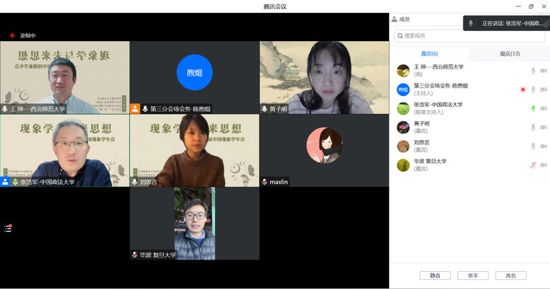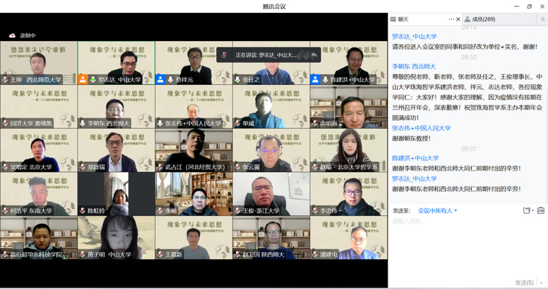 12月3-4日,第26届中国现象学年会通过腾讯会议在线上召开,本届年会的主题是“现象学与未来思想”,由中国现象学专业委员会、中山大学哲学系(珠海)、中山大学现象学文献与研究中心、中山大学“一带一路”研究院联合主办,来自全国各地的与会专家学者300余人参加了会议。银河官网 李朝东教授、王珅副教授及10多名硕士、博士研究生参加了本次年会。
