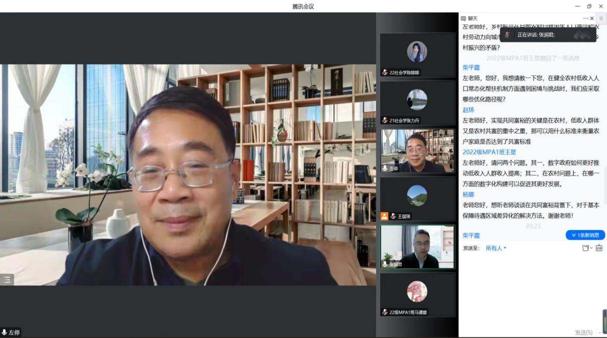 讲座尾声,左停教授与银河官网 师生进行了热烈地交流与讨论,并针对学院师生们提出的问题进行了认真回应。随后,张老师结合自己的观点对左老师此次讲座作了点评。首先,张老师指出随着社会的发展,农村低收入人群的帮扶问题,成为了国家、地方以及各类人群的重要问题。长期的脱贫攻坚之后,我们国家全面建成了小康社会,但是,农村低收入人口的帮扶问题越来越成了全面乡村振兴、实现农业农村现代化和共同富裕等的重大问题中的重中之重。所以,从国家层面上,相近连续出台了一系列的政策,比如:左老师讲的《中共中央国务院关于乡村振兴和脱贫攻坚的有效衔接问题的意见》。2021年10 月,我们国家出台了实现农业农村现代化十四五规划。今年党的二十大,聚焦到共同富裕上,涉及到低收入人口的讲话,针对国家大政方针的落地及见效问题提出了相关规划。然后,张老师指出在农业农村现代化十四五规划里面,第八章第三节主要讲了健全农村低收入人口和欠发达地区的帮扶机制,总共讲了四个方面,提出了要动态监测分类帮扶,集中支持重点帮扶县,对西部地区160个国家乡村振兴重点帮扶县给予集中支持,加强财政转移支付,巩固脱贫攻坚成果和乡村振兴的有效衔接。最后,张老师提出怎么做才能将政策落地?能够对乡村振兴、农业农村现代化到共同富裕有所帮助,这是学者及学子应该认真思考的问题。针对政策怎样落地的问题,张老师指出左老师对低收入人口先做了一个学术的构建,从六个不同的方面,回答了什么是低收入人口。在此基础上,左老师又提出了六个维度的政策选项,针对不同的适用对象提出了创新性的可供选择的政策选项。这样才能真正把乡村振兴、农业农村现代化和共同富裕最难的低收入人口的相关问题精准到位,使得国家下一步的社会救助和反贫困的帮扶政策能够更加科学、合理、准确和具有操作性。张老师指出左老师的讲座精彩丰富,不仅对研究问题具有自己的学术思想和理论探讨,而且左老师对于研究现实热点及难点问题的路径逻辑,值得我们师生共同学习和共同探讨。
