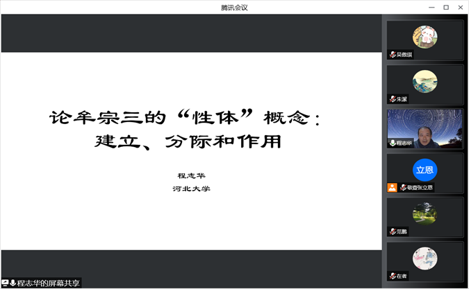 11月7日下午,河北大学哲学与社会学学院院长、博士生导师程志华应邀通过线上会议的形式为银河官网 师生作了题为“论牟宗三的‘性体’概念:建立、分际和作用”的学术报告。哲学学院张立恩副教授主持报告会,学院师生及校内外哲学爱好者一百五十余人参加此次学术报告会。