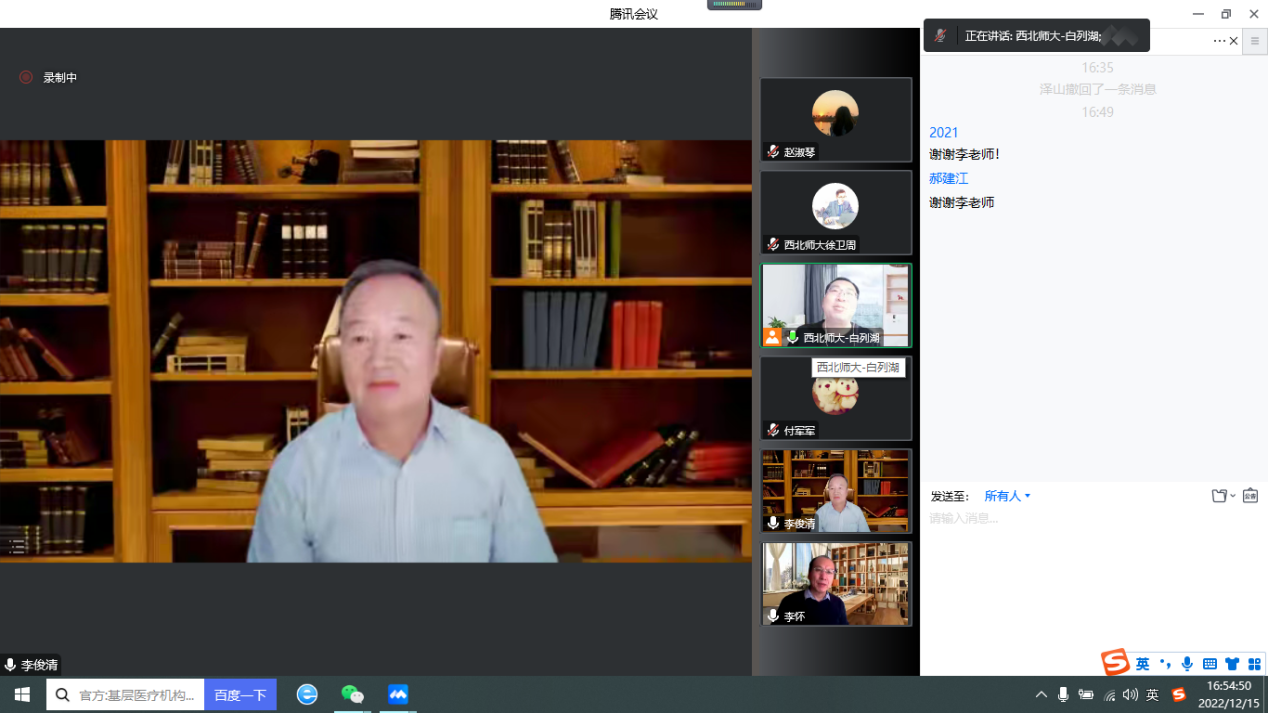 2022年12月15日15时,中央民族大学李俊清教授应邀为银河官网 师生作了题为“国家社科基金论证与申报”的学术讲座。本次讲座由银河官网 李怀教授主持,学院共计200多名师生参加了此次讲座。