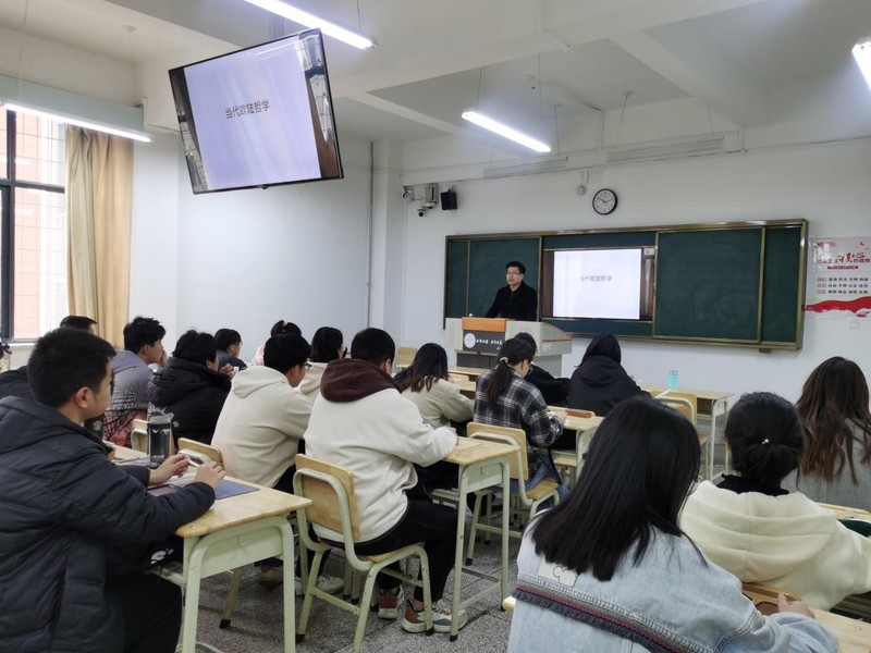 2023年3月7日上午,学校党委常委、纪委书记、监察专员马庆,教学质量监控处处长宋鹏飞深入银河官网 教师课堂听课,朱海斌副教授为2020级哲学本科班讲授《当代欧陆哲学》课程,学院负责人一同参加听课。