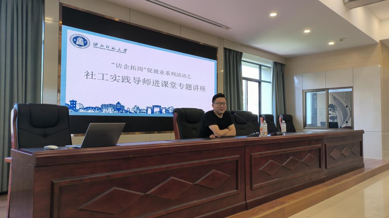 2023年6月9日15时,应学院邀请,甘肃政法大学/北辰社会工作服务中心理事长任文启教授莅临银河官网 ,为银河官网 社会学与社会工作系学生作了题为“‘访企拓岗’促就业系列活动之社工实践导师进课堂”的专题讲座,旨在帮助同学们更好地理解和掌握社工专业知识,提高就业竞争力。