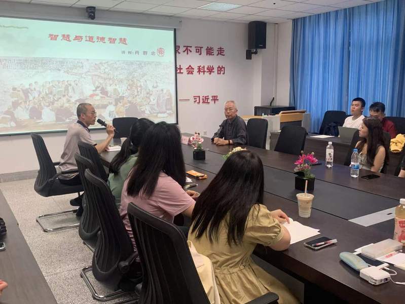 随后,肖群忠教授讲解了什么是道德智慧。“道德智慧”的内含可以概括为四个方面:人生觉解、价值澄明、知世明伦、修身立命。人生的完善不仅需要明理,而且要躬于实践。一个人的自我完善,不仅是知性的心智的进步、才能的增长,而且是道德的完善。年轻学子不仅要“成才”,而且要“成人”,不仅智商要高,“情商”“德商”更要高。重视道德修养,甚至希圣成贤,是中国传统文化的重要特质。如果说知识是一种力量的话,那么,道德也是一种力量。事业的成功,人生的幸福,自我的完善,都离不开道德,道德智慧具有十分重要的实践意义。