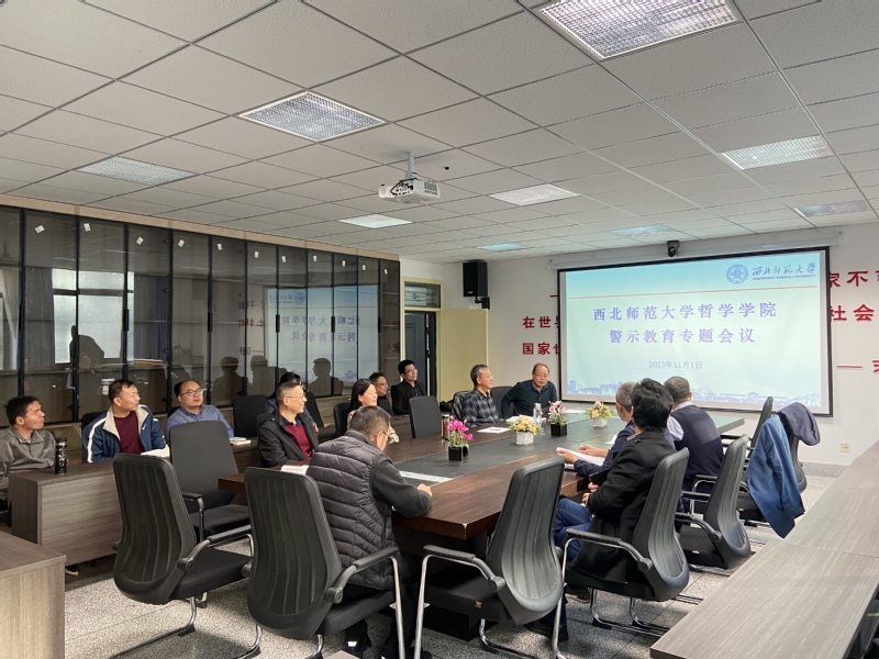 2023年11月1日,为进一步推动学院“三抓三促”行动向纵深发展、扩大成效,充分发挥典型案例的警示教育作用,以案为鉴、举一反三、系统施治,严实学院工作作风,教育引导党员干部职工知敬畏、存戒惧、守底线、强作风、精业务,哲学学院在209会议室召开了全院教职工警示教育专题会。