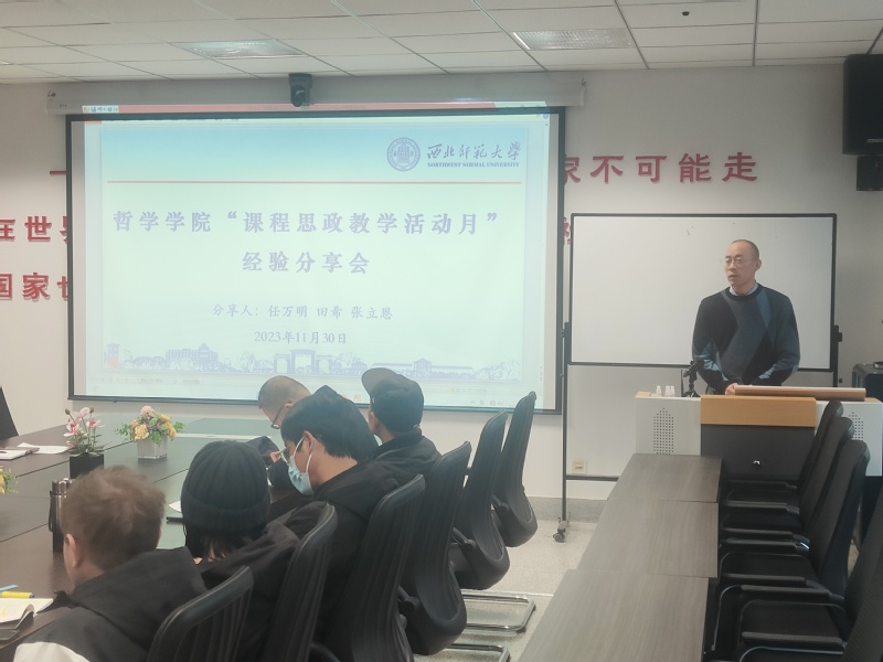 通过这次分享,极大的促进了银河官网 课程思政建设工作的深入开展。从随后的表现来看,因受学院对于课程思政建设工作的重视,受已有课程思政建设项目成果经验的感召,2023年度哲学学院又有三位老师申报了学校课程思政师范项目,即:由胡朝都老师主持申报的课程思政师范课程《<西方哲学史>课程思政示范项目》、由杜海涛老师主持申报的课程思政师范课程《<当代英美哲学>课程思政示范课程建设项目》以及由孙圣老师主持申报的课程思政师范课程《甘肃省<科学哲学经典导读>课程思政研究》。这三项课程思政师范课程建设项目的申报将助推银河官网 课程思政建设工作的持续发展。
