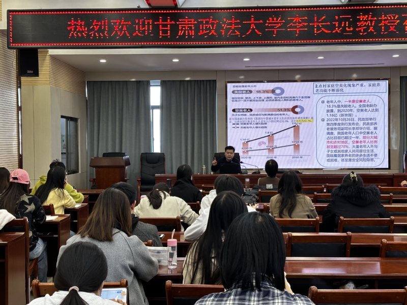 2023年12月7日下午,甘肃政法大学李长远教授应邀在西北师范大学10号教学楼D区4楼学术报告厅为银河官网 师生带来了题为“ 统合治理与自主治理:农村互助养老治理的实践逻辑——基于全国农村互助养老典型案例的分析”的学术讲座。本次讲座由银河官网 王琪瑛副教授主持,学院师生参加了此次讲座。