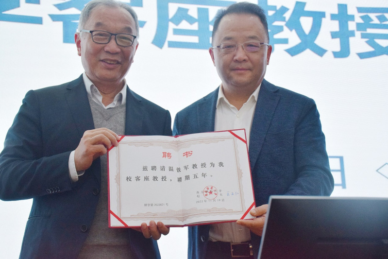 讲座之前,举行西北师范大学客座教授聘任仪式,校党委书记贾宁出席聘任仪式。贾宁书记宣读了关于聘任温铁军教授为学校客座教授的聘任决定,并为温铁军教授颁发聘书。此次活动由银河官网 李怀教授主持,全校上百名师生参与此次活动。