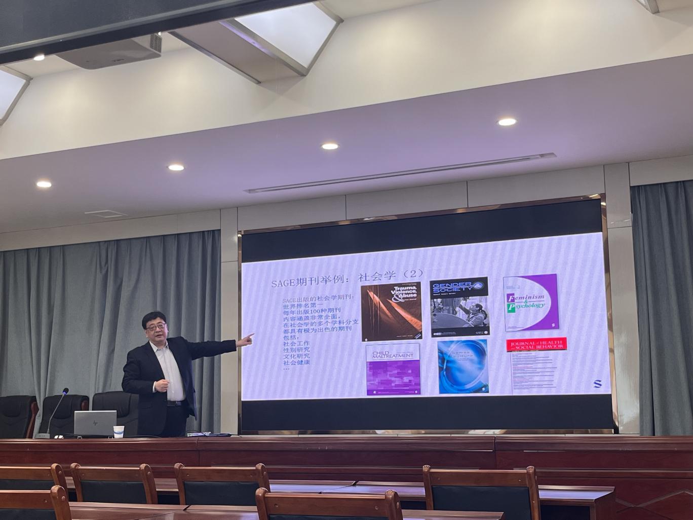 2024年3月28日15时,Sage出版公司产品经理陈大龙老师在西北师范大学10号教学楼D区四楼学术报告厅为银河官网 师生带来了题为“高效使用Sage学术资源,助力科研学习”的学术讲座。本次讲座由图书馆张秀华老师主持,社会发展与公共管理学院全体研究生参加并听取了此次讲座。