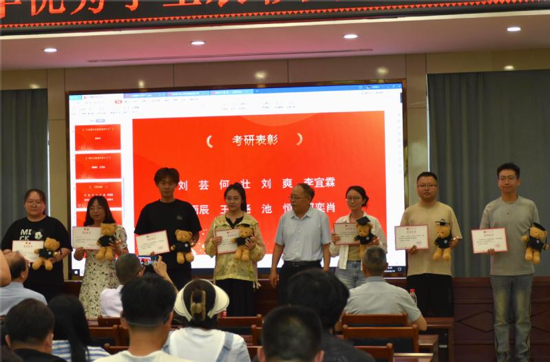 会上,何书记宣读了《关于对2024年优秀学生及考研考博录取学生进行表彰奖励的决定》,学院决定对在学习成长、志愿服务、考研考博等方面取得显著进步和优异成绩的70名同学予以表彰,希望哲社学子们志存高远、德才兼修,坚守“哲思明理,爱智求真;各美其美,美美与共”的人生理念,不畏艰难、奋发图强,勇做走在时代前列的奋进者、开拓者、奉献者。在热烈的掌声中,学院党委书记姜宗强、院长李怀、副院长王珅、正处级辅导员李光华分别为获得表彰奖励的同学们颁奖。