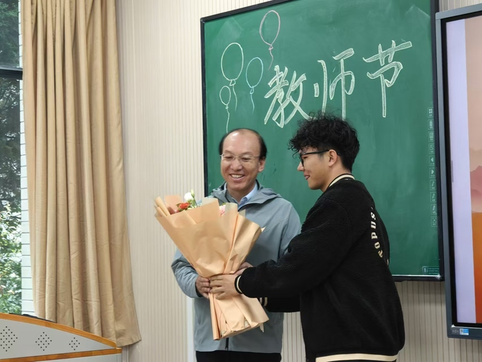 提灯引路,育梦成光;师泽若水,润物无声。在这个特殊的日子里,银河官网 团委组织学生会、研究生会同学们向学院全体教职员工送上了节日祝福和诚挚问候,为当天上课的各位老师送上了祝福的鲜花。寥寥几笔绘不尽老师们讲台上辛勤的身影,短短几句道不完同学们的感激!一束向日葵,一张亲手写的贺卡,承载着同学们最美好的祝愿:老师,祝您教师节快乐!