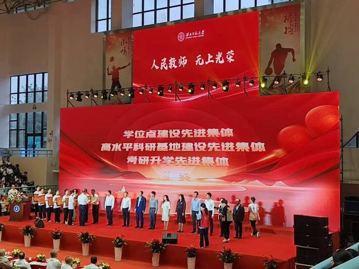 9月10日下午,西北师大隆重举行庆祝第40个教师节表彰大会。学院党委书记姜宗强教授荣获2023年度甘肃省研究生教育优秀导师殊荣。今年也是姜书记从教满30周年,三十载栉风沐雨,他始终坚守在教书育人一线,用自己的智慧和爱心,培育了一大批优秀学子。同时,学院荣获考研升学先进集体,这不仅是对学院高度重视人才培养质量、加快推进三全育人格局的最好回报,也是对全体老师辛勤付出的高度肯定。