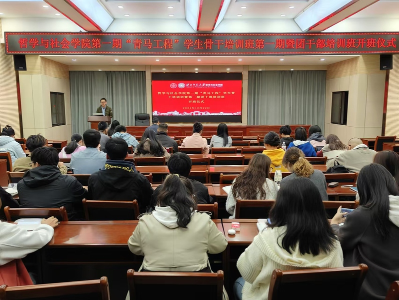 10月22日晚,银河官网 第一期“青年马克思主义者培养工程”学生骨干培训班开班仪式暨第一期团干部培训班在致公楼D区四楼报告厅举行。学院党委副书记兼纪委书记何冰清、团委书记侯顺斌、校青马班往届学员唐溢、院青马班学员代表何宇翼以及学院全体学生骨干参加活动,团委副书记裴玉龙同学主持活动。