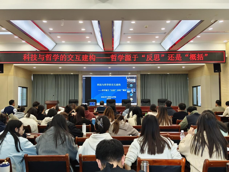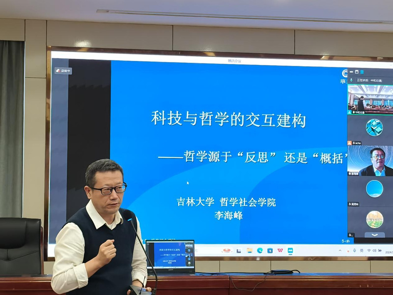 11月18日,“中和论道”第115期在银河官网 4楼报告厅举行,本期讲座主题为“科技与哲学的交互建构 哲学源于‘反思’还是‘概括’”,由吉林大学哲学社会学院李海峰教授主讲,姜宗强教授担任与谈人,王珅副教授主持。讲座吸引了校内外诸多师生线上、线下热情参与。
